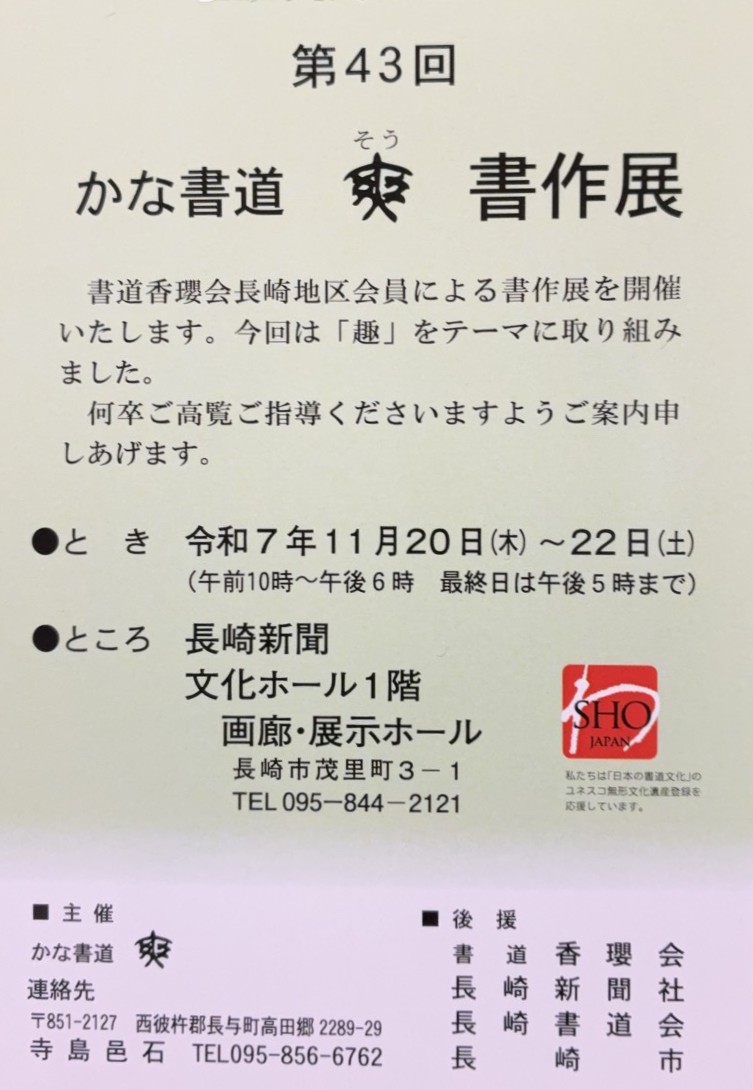 ◆第43回かな書道 爽 書作展(代表 寺島邑石)