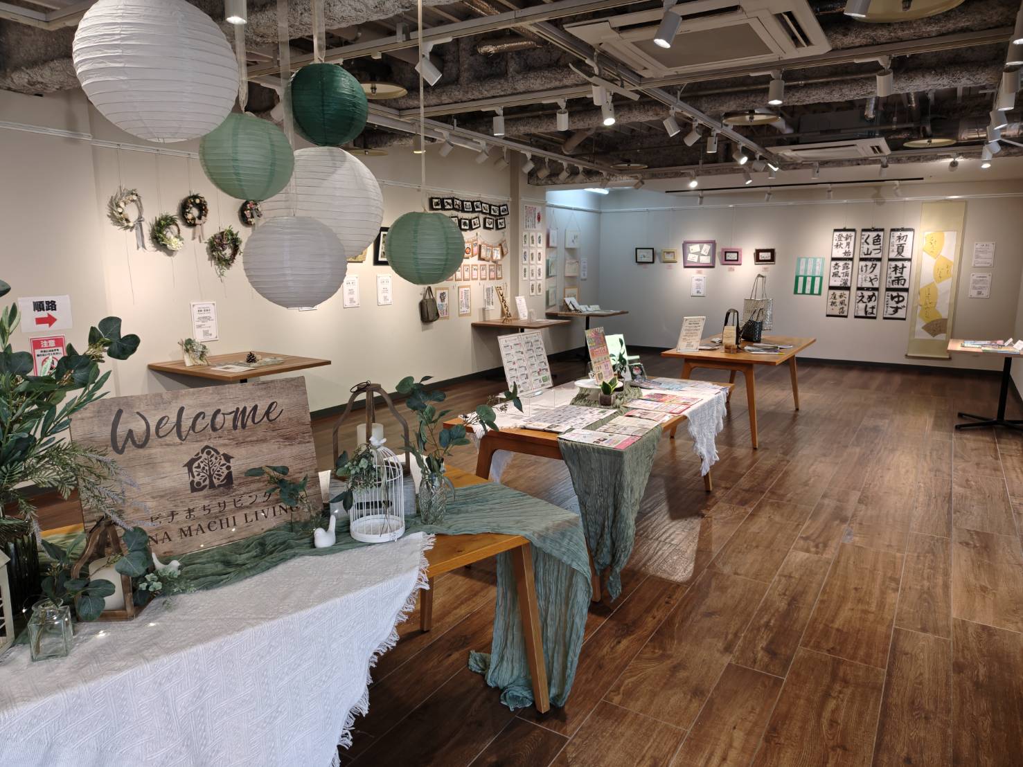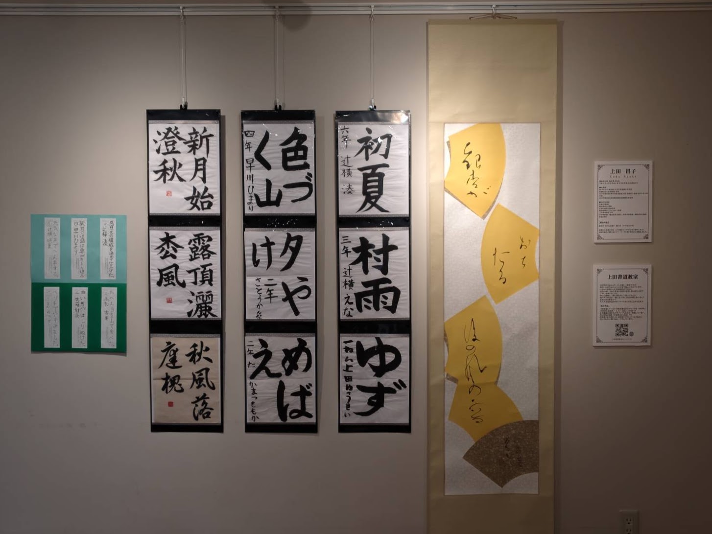 昨年末に書き初め講座を開催したご縁で、会場であるビナウォークの文化祭にお誘いいただき、当教室の生徒さんの作品を展示させていただきました。